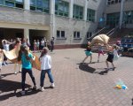 Uroczyste obchody matołkowego święta rozpoczęliśmy od pokonania toru przeszkód. Podobnie jak Koziołek musieliśmy zmierzyć się z babą-jagą- uciekając przed nią na hulajnodze, zdobyć tytuł mistrzów w narciarstwie, dostać się do Afryki w workach, wystrzelić coś z armaty (ale spokojnie my strzelaliśmy tylko balonamiJ), rozwiązać szyfr- prawie tak trudny jak alfabet chiński oraz znaleźć złoto. A gdy już uporaliśmy się ze wszystkimi zadaniami czekał na nas tort z osiemdziesięcioma świeczkami, które ochoczo zdmuchnęliśmy. Oczywiście nie zabrakło też gromkiego stola oraz życzeń dla szacownego Jubilata. Jeszcze raz życzymy Matołkowi stu, a może nawet dwustu lat oraz wciąż rosnącej liczby małych i dużych czytelników.