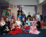 Jedno ze styczniowych popołudni upłynęło pod znakiem zabawy karnawałowej. Tego dnia dzieci z oddziałów przedszkolnych wraz z wychowawcami bawiły się przy rytmach największych przebojów. Piękne księżniczki, dzielni rycerze, kowboje, piraci, bajkowe zwierzęta i wiele innych barwnych postaci opanowało naszą szkołę. Skoczna muzyka zachęcała wszystkich do tańca, a wspólne gry i zabawy sprawiły uczestnikom mnóstwo radości. W przerwie dzieci mogły odpocząć i posilić się słodkim poczęstunkiem. Zabawa była naprawdę doskonała i dostarczyła wszystkim wielu miłych wrażeń