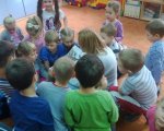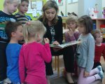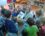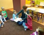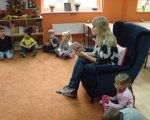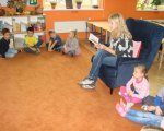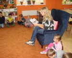 W naszych oddziałach przedszkolnych zapraszamy chętnych rodziców do wspólnego czytania bajek dzieciom, w ramach akcji "Cała Polska czyta dzieciom". Mamy czytały dzieciom różne bajki, przyniesione przez siebie i w większości wybrane wspólnie z dzieckiem w domu. Spotkania dały dzieciom wiele radości i powodów do dumy: "To moja mama czyta..." szeptały do siebie. Należy pamiętać, że taki dzień, w którym mama albo tata odwiedzą dziecko w przedszkolu, będzie zapamiętany na długo. Cieszymy się, że rodzice, w natłoku obowiązków, potrafią znaleźć chwilę, aby spędzić czas wspólnie z dziećmi.