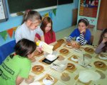 Świetliczaki z grupy pani Joanny na podsumowanie tygodnia życzliwości zamieniły się w cukierników. Wszystko po to, by przygotować specjalne ciasteczka - pełne wdzięczności i życzliwości. Dzieci ochoczo ważyły i odmierzały niezbędne składniki, wałkowały ciasto, wypełniały je czekoladą. Po upieczeniu i degustacji uczniowie zabrali swoje wypieki do domu, by podzielić się nimi z bliskimi im osobami.