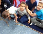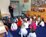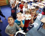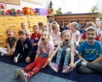 Uczniowie klasy 1b wzięli udział w zajęciach z czytaniach wrażeniowego. Dzięki wypowiedzeniu magicznego zaklęcia, udało nam się przenieść do dżungli i wybrać na wędrówkę ze słoniem Elmerem. W trakcie wspólnego czytania - opowiadania wykonywaliśmy ćwiczenia artykulacyjne, tym samym dbając o poprawną i staranną wymowę, skakaliśmy, ćwiczyliśmy poczucie równowagi oraz doskonaliliśmy nasze zdolności w pełnieniu roli uważnego słuchacza. Na koniec zajęć wykonaliśmy motyle, które przypominały nam o morale płynącym z wprawy do świata słonia w kratkę.