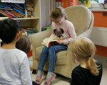 W tym roku szkolnym w naszej świetlicy wprowadziliśmy Dzień Książki, odbywający się raz w miesiącu. Podczas tego dnia przynosimy swoje ulubione książki oraz prezentujemy je w klasie. Oglądaliśmy już różne książki - przygodowe, detektywistyczne, na temat gier, a nawet w obcych językach. Dzięki temu dzielimy się ciekawymi dla nas książkami, a także naszymi zainteresowaniami.