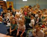Już po raz trzeci nasze Świetliczaki hucznie świętowały Światowy Dzień Pluszowego Misia. W tym roku niedźwiadki, nie tylko te pluszowe, zaprosiły nas w podróż po misiowych krainach. Odwiedziliśmy Misia Uszatka z klapniętym uszkiem, który pięknie zaśpiewał nam kołysankę, a następnie zaprosił do wspólnej zabawy przy piosence „Misie szare”; misia bambusowego, który po sprawdzeniu naszych umiejętności w posługiwaniu się pałeczkami, poczęstował nas misiami żelkami; misia polarnego, wraz z którym bawiliśmy się gazetowymi śnieżkami; niedźwiedzia grizzly, któremu pomagaliśmy łowić ryby i rozpoznawać bajkowe misie oraz misia Yogi, który sprawdzał, jak szybko potrafimy pokonywać przeszkody z piknikowym koszykiem w ręce. Tradycyjnie też została zorganizowana wystawa pluszowych misiów, a wszyscy z radością witali zarówno starych znajomych, jak i nowe misiaczki, które gościły u nas po raz pierwszy. W tym roku udało nam się zebrać około 700 misiowych przytulanek, a już po raz drugi najwięcej, bo aż 300 misiów zgromadziła i tym samym wywalczyła tytuł Najbardziej Misiowej Grupy Świetlicowej- grupa pani Asi. Mamy nadzieję, że misie odwiedzą nas również w przyszłym roku, bo przecież jak powszechnie wiadomo w życiu z misiem jest weselej.