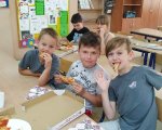 31 maja zorganizowaliśmy w naszych świetlicach Dzień Dziecka. W kl. 3a na dzieci czekał poczęstunek w postaci pizzy oraz zabawy na świeżym powietrzu. W kl. 3c najpierw wraz z panią Wychowawczynią wybraliśmy się na lody. Później wspólnie zorganizowaliśmy Poduszkowe Kino, pełne pysznych, słodkich przekąsek oraz drobnych upominków. Na koniec wspólnie zagraliśmy w nowe, edukacyjne gry. To był bardzo udany dzień!