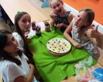 30 maja świętowaliśmy w naszych świetlicach Dzień Dziecka. Wykonywaliśmy pyszne, waflowe torciki dekorując je słodkimi dodatkami. Po uczcie odpoczywaliśmy na nowych kocach, które były jednym ze świetlicowych prezentów z tej okazji. To był bardzo udany dzień!