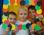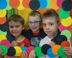 15 września klasa 1A uroczyście obchodziła Międzynarodowy Dzień Kropki. Tego dnia ubrania wszystkich bez wyjątku przyozdobione były kropkami. Na zajęciach w świetlicy uczniowie poznali genezę tego święta. Uważnie wysłuchali opowiadania jak to zwyczajna kropka zmieniła świat małej dziewczynki o imieniu Vashti. Historia ta uświadamia, że każdy z nas ma jakieś ukryte zdolności, talenty, które czekają na odkrycie. Następnie uczniowie, tak jak bohaterka książki szukali mocnych stron, a także tak jak ona próbowali według własnego pomysłu stworzyć kropkowe obrazy. Tak powstała wystawa. Na koniec dnia wszyscy pozowali do kropkowych zdjęć, aby ten dzień na długo pozostał w pamięci.