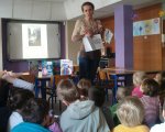 Z okazji Światowego Dnia Książki - 24 kwietnia w naszym oddziale przedszkolnym gościliśmy Panią Annę Paszkiewicz - autorkę książek dla dzieci, zdobywczyni nagród w konkursach literackich, inicjatorkę kampanii społecznej „Cała Polska PISZE dzieciom”. Podczas spotkania autorskiego dzieci miały okazję uczestniczyć w „podróży w czasie", poznając historię powstawania książki dawniej i dziś. Podczas uważnego słuchania fragmentów czytanej książki pt. „Po drugiej stronie tęczy” dzieci miały okazję poznać losy Kuby – głównego bohatera lektury oraz jego ciekawych przygód. Dzieci aktywnie uczestniczyły w spotkaniu by na zakończenie przystąpić do "Baśniowego konkursu" ze słodkimi nagrodami. Z okazji Dnia Książki przygotowano wspólnie z dziećmi i rodzicami ciekawą wystawę nietypowych książek – bardzo dużych, malutkich, dźwiękowych, rozkładanych itp. Dzieci tworzyły również własne książeczki, pełne ciekawych historyjek, które można oglądać na naszej przedszkolnej wystawie.