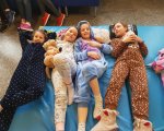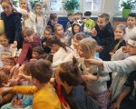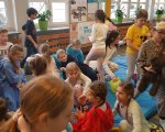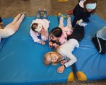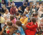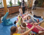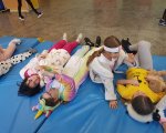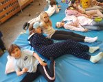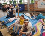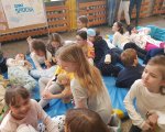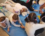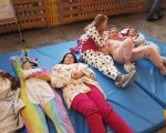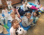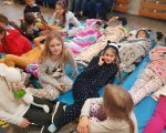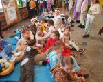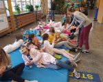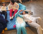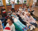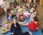 Przebrani w stroje nocne/piżamkowe leżeli na materacach i słuchali kołysanek.