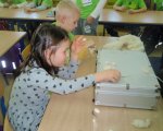 Po raz kolejny gościmy w naszej szkole Panią Marzenę i Pana Witolda Kozłowskich z fundacji „OVO dla Kultury i Edukacji”. A to oznacza, że kolejni uczniowie mogą zgłębiać tajniki sztuki rękodzielniczej. Na pierwszych zajęciach dzieci dowiedziały się, na czym polega filcowanie na sucho. Szybko okazało się, że prawdziwy rzemieślnik musi nie tylko być bardzo pracowity, ale także cierpliwy i uważny. Dzieci z ochotą przystąpiły do prac z czesanką, a wszystkie, które wytrwały do końca zadania mogły się pochwalić własnoręcznie wykonaną myszką. Z dumą muszę stwierdzić, że w świetlicowej sali pojawiło się wiele uroczych myszek, które z wielkim wdziękiem pozowały do zdjęć.