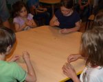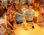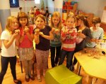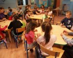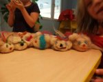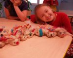 Pod koniec maja, gdy większość świetlicowych grup przygotowywała się do konkursu „Historia Polski w legendach ukryta”, a w niemalże wszystkich świetlicowych salach usłyszeć można było historię złotej kaczki, bazyliszka lub smoka wawelskiego, w Radosnej Szkole pojawiło się stadko myszy… Nie byli to jednak krewni księcia Popiela, tylko przesympatyczne maskotki wyczarowane przez Świetliczki przy pomocy igły i czesanki. Filcowe myszki znalazły się w naszej sali za sprawą pani Marzeny i pana Witolda z fundacji OVO, a wszystko dlatego, iż kwietniowe spotkania z rękodziełem poświęcone były filcowaniu. Choć praca tym razem wymagała od nas nie tylko cierpliwości, ale również mnóstwa uwagi (igły były dość złośliwe i z próbowały pokłuć nasze palce), to wszystkim nam zadanie to bardzo się podobało. Nie możemy się już doczekać kolejnego spotkania z tak bardzo lubianą przez nas fundacją.