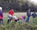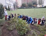 W ramach jesiennych akcji zbieraliśmy w holu szkoły cebule żonkili (zebraliśmy około 70 sztuk) oraz po 1zł od ucznia SP118 (zebraliśmy 680 zł za które zakupiono dwa drzewa, 10 motylich krzewów (Buddleja davidii) i 10 różnych traw ozdobnych z rodzaju Miskant).