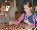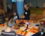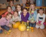 Jeśli ktoś sądzi, że jesień jest szaro-bura i smutna, koniecznie powinien w deszczowe dni zajrzeć do naszych świetlic. W tym roku Wesołe Świetliczaki prześcigały się w pomysłach, jak wyczarować piękną, wielobarwną jesień. W świetlicowych salach pojawiły się portrety Pani Jesieni, wełną malowane jesienne pejzaże oraz różne gatunki liści i drzew. Nie mogła także zabraknąć kasztanowych budowli oraz jesiennych dyni, z których w tym roku, natchnieni tematyką Dolnośląskiego Festiwalu Dyni, próbowaliśmy wyczarować dyniowe pojazdy.