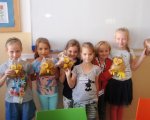 W ramach zajęć „Świat pastelą malowany - edukacja przez ruch” uczennice klasy 1e wybrały się na wycieczkę do Parku Zachodniego. Dziewczynki miały za zadanie włożyć do woreczków jak najwięcej kolorowych liści. Gdy woreczki były już pełne, wróciłyśmy do szkoły, gdzie dzięki wyobraźni udało nam się zamienić te jesienne skarby w urocze sowy.