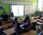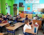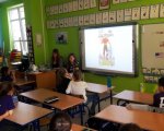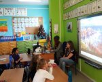 Chcieliśmy się dowiedzieć, jak takim osobom mieszka się w Polsce, czy trudno jest im się porozumiewać w naszym języku i czy dzieci są w stanie jakoś im pomóc. Zaprosiliśmy więc do nas p. Sarah Cook, która pochodzi ze Stanów Zjednoczonych, a obecnie studiuje w naszym mieście. Pytaliśmy o to, w jakich sytuacjach najtrudniej jest jej posługiwać się językiem polskim, wspólnie także próbowaliśmy przeczytać - po polsku i po angielsku - wierszyki łamiące języki. Pani Sarah opowiadała nam także bardzo ciekawe legendy amerykańskie. Dzięki tej lekcji, każdy mógł odczuć, że porozumiewanie się w obcym języku innym kraju nie jest łatwe i wymaga odwagi.