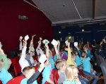 Klasy drugie na spektaklu teatralnym "Podkowa szczęścia, czyli w pogodni za marzeniem".