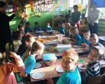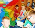 Ciekawość świata rozbudzały też dzieci w ramach Ogólnopolskiego Dnia Głośnego Czytania. W grupie świetlicowej pani Asi uczniowie wzięli udział w konkursie znajomości literatury dziecięcej. Dzieci rozpoznawały tytułu czytanych książek, rozwiązywały zagadki dotyczące bohaterów ich ulubionych lektur, układały rozsypanki sylabowe i wykazywały się znajomością autorów. Na koniec na uczestników czekała wielka niespodzianka: króciutkie audiobooki nagrane przez nauczycieli: panią Justynę Boruszewską i pana Marcina Bednarkiewicza oraz najbardziej wyjątkowe Osoby na świecie: Rodziców, Ciocie, Dziadków.