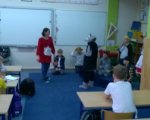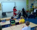 Przedstawili w świetlicach szkolnych dwa spektakle pt. "Czerwony Kapturek" i "Pinokio"o charakterze humorystycznym.
