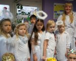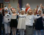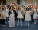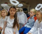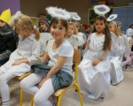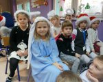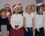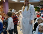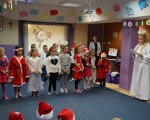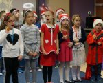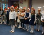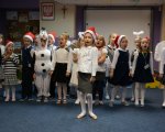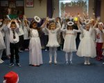 Z okazji Świąt Bożego Narodzenia w świetlicach klas pierwszych zorganizowano KONCERT KOLĘD I PASTORAŁEK. Każda grupa, pod opieką swojej pani, przygotowała kilka świątecznych utworów, które zaprezentowała zaproszonym gościom. Konferansjerem na uroczystości był nikt inny jak sam ANIOŁ, w którego wcieliła się Pani Agnieszka. Na zakończenie pięknych występów życzenia Wesołych Świąt, do utworu "Merry Christmas Everyone" Shakin Stevens`a, wytańczyła grupa p. Eweliny.