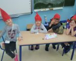 W październiku grupę pani Asi opanowały… wrocławskie krasnoludki. A to za sprawą Świetliczaków z klas 2e i 2f, które pilnie wysłuchały opowieści z księgi „Wrocławskich krasnali historie prawdziwe”, dowiedziały się między innymi: ile lat żyją krasnoludki, jaki tytuł nosi najpopularniejsza bajka w świecie krasnali, z kim krasnoludki stoczyły największą bitwę w historii podziemnego miasta… a wszystko po to, by jak najlepiej przygotować się do wielkiego konkursu o tytuł „Najmądrzejszych krasnali w świetlicy”. Do konkursu stanęło 5 drużyn: Extra Krasnale, Słoneczne Krasnale, Śnieżne Krasnale, Wrocławskie Krasnale oraz Czerwone Czapeczki. Wszyscy uczestnicy zabawy wykazali się ogromną wiedzą i umiejętnością walki fair play. Po zaciętych zmaganiach Wielka Rada Krasnoludzka (w tej roli pani Asia) wyłoniła zwycięzców - drużynę Czerwonych Czapeczek w składzie: Zosia Błażków, Kinga Grabowska, Kinga Nych i Bartek Bessert. Oczywiście serdecznie gratulujemy Zwycięzcom, ale wielkie brawa należą się wszystkim drużynom, gdyż prezentowały one wysoki poziom, a swoją wiedzą na temat wrocławskich krasnali mogłyby zawstydzić niejednego dorosłego.
