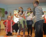 Jak powszechnie wiadomo Wrocław przed wiekami upodobały sobie krasnoludki i to właśnie na naszym nadodrzańskim brzegu założyły swoje miasto. Dlatego też Świetliczaki z naszej szkoły postanowiły w tym roku bliżej przyjrzeć się najmniejszym mieszkańcom Wrocławia. I tak ostatnie dni września minęły niemalże wszystkim dzieciom na zgłębianiu tajemnic rodu krasnoludków spisanych w książce Mariusza Urbanka „Wrocławskich krasnali historie prawdziwe”. Gdy wszyscy już dowiedzieliśmy się dlaczego krasnoludki wspinają się na latarnie, skąd się wzięły krasnoludzkie dziewczyny i dlaczego krasnal Szermierz zamiast szpady zazwyczaj nosi parasolkę, chętne drużyny wzięły udział w wielkim konkursie wiedzy krasnoludzkiej. Pytania były trudne i podchwytliwe i na dodatek trzeba było jeszcze na nie polować, gdyż zabrały nam je łakome ryby i sprytne żaby. Jednakże wszystkie drużyny były świetnie przygotowane i wspaniale poradziły sobie z konkursowymi zadaniami, a szczególne brawa należą się naszym Pierwszoklasistom, dla których był to pierwszy świetlicowy konkurs i które bardzo zaskoczyły organizatorki ogromem swoje wiedzy.
