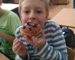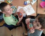 Jak prawdziwi cukiernicy dekorowały pączki samodzielnie wykonanym lukrem i innymi słodkościami. Było przepysznie!
