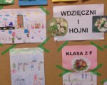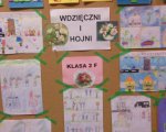 W listopadzie 2016 roku uczniowie klasy II F pod kierunkiem wychowawcy opracowali własne komiksy i laurki okolicznościowe metodą projektu w ramach programu Erasmus+, realizując wartości: wdzięczność i hojność. Wszystkie opowieści i laurki zawierały treści zgodne z problematyką "Jesteśmy wdzięczni i hojni". Prace zostały wyeksponowane na tablicy w holu szkoły, gdzie cała społeczność szkolna mogła obejrzeć efekty twórczości uczniów z klasy II f. Zapraszamy do obejrzenia galerii zdjęć.