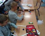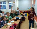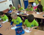 W naszej świetlicy od listopada wprowadziliśmy Lekcje Uczniowskie. Prezentujemy na nich nasze umiejętności i przekazujemy tę wiedzę naszym kolegom i koleżankom z klasy. Pierwszą lekcję przeprowadził Patryk Powroźnik. Poznaliśmy na niej technikę wykonania robotów z papieru i wspólnie je wykonaliśmy. Kolejną lekcję prowadziła Zuzia Zagrobska. Dzięki jej szczegółowej instrukcji nauczyliśmy się jak wykonać bombkę z papierowych pasków. Następnie mieliśmy okazję udoskonalać nasze umiejętności sportowe. Mikołaj Fatyga, Olek Piętak i Krystian Tracz przeprowadzili trening piłkarski. Uczyliśmy się pozycji bramkarza, sposobów odbierania i podawania piłki, a także trenowaliśmy celność. Czwarta lekcja była lekcją plastyczno-techniczną przeprowadzoną przez Liwię Jankowską i Lenę Żak. Poznaliśmy technikę tworzenia symetrycznych, papierowych serwetek i dekoracji. Kolejne zajęcia zaplanowały Zosia Elimer, Oliwia Tracz i Ania Wiącek. Przygotowały bardzo szczegółowe instrukcje narysowania postaci z książki Spirit Animals. Ostatnią lekcją w listopadzie była lekcja języka ukraińskiego, którą przygotowała Maiia Vuiko. Poznawaliśmy litery w ukraińskim alfabecie, a także pisownię i wymowę nazw zwierząt w języku ukraińskim. To było bardzo pouczające i nowe doświadczenie! Wszystkie lekcje wzbogaciły nas o nowe umiejętności, a prowadzącym pozwoliły pokazać swoje mocne strony.