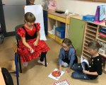 W tym dniu kropka była motywem przewodnim, kropki królowały na ubraniach, a Ci którzy nie znaleźli ich w swoich szafach ozdobili swoje koszulki samodzielnie wykonanymi kropeczkami czy kółeczkami. Rozwiązywaliśmy łamigłówki z kropką w tle, oglądaliśmy film „The dot”. Nie mogło zabraknąć zajęć plastycznych z kropką w tle. Kropka była także inspiracją do stworzenia krótkiego przedstawienia teatralnego, które później prezentowane było w klasach młodszych. Dzień sprawił nam wiele radości.