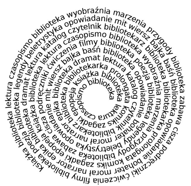 Wytęż wzrok i policz, ile razy w spirali występuje słowo biblioteka