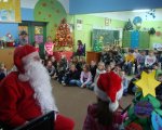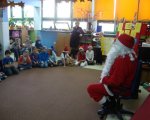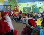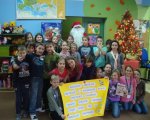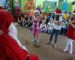 Kiedy za oknami w śniegu zasnęły już wszystkie drzewa, a nad naszym miastem wiatr o zimie piosenkę śpiewał, do świetlicowych drzwi zapukał bardzo wyczekiwany przez wszystkich Świetliczków Gość- miły siwy starszy pan z wielkim workiem pełnym prezentów. Święty Mikołaj, bo to właśnie on zaszczycił nas swoją obecnością, dla każdej świetlicowej grupy miał piękne podarki oraz moc dobrych słów. Jego obecność sprawiła nam wielką radość, a ponieważ każdy Świetliczak dobrze wie, że wręczanie prezentów jest równie miłe jak ich otrzymywanie, dlatego też wszystkie grupy przygotowały dla Mikołaja świąteczne choinki, przystrojone bardzo wyjątkowymi bombkami. Na każdej bombce jej twórca wypisał swoje marzenie bądź życzenia dla Mikołaja. Wszyscy wierzymy, że Mikołaj zabrał choinki do swojej krainy a marzenia wypisane na naszych bombkach pewnego dnia się spełnią. Nasz zacny Gość został także uhonorowany szeregiem występów artystycznych: wysłuchał piosenek (nie tylko tych mikołajkowych) oraz obejrzał przygotowane specjalne na jego cześć tańce Śnieżynek. Niewątpliwie Mikołaj przekonał się, że świetlica „Planeta” jest miejscem pełnym niezwykłych talentów.