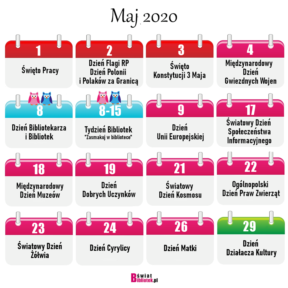 Zapraszamy do zapoznania się z majowym kalendarzem, by sprawdzić, jakie święta będziemy obchodzić.