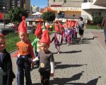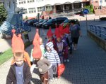 Dzieci z oddziałów przedszkolnych obchodziły dziś Dzień Krasnala. Podczas zajęć dowiedziały się wielu ciekawostek z życia krasnali, słuchały opowieści o nich, rysowały postacie krasnali i przy pomocy swoich pań wykonywały czerwone czapeczki, które z dumą niosły podczas uroczystej parady krasnoludków, która przeszła wokół szkoły. Po paradzie nadszedł czas na zawody krasnoludków, podczas których wszyscy dobrze się bawili.