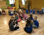 Po przywitaniu przez panią dyrektor Jolantę Skotnicką i odśpiewaniu Hymnu Szkolnego przyszłe świetliczaki zostały poddane kilku zadaniom. Były próby smaku, słuchu, sprawności językowej oraz wiedzy. Wszystkie zadania zostały wykonane poprawnie i oczywiście nagrodzone gorącymi brawami.