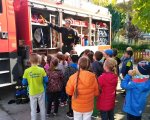 22 września w naszej szkole odbyła się próba ewakuacji na wypadek pożaru. Po odwołaniu alarmu mogliśmy zapoznać się z wyposażeniem wozu strażackiego i przymierzyć hełmy prawdziwych