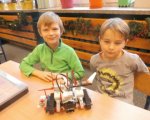31.01.2018 uczniowie klasy 1 e uczestniczyli w 2 części warsztatów programowania przy użyciu zestawów klocków LEGO Mindstorms. Instruktorzy z Planety Robotów krok po kroku objaśniali sposoby blokowego języka programowania, wprawiania maszyn w ruch i sterowania robotami. Dzieci pracowały w zespołach 2-3 osobowych – każdy zespół pracował na edukacyjnych zestawach składających się m.in. z komputera centralnego, serwomotorów, czujników oraz elementów technicznych (belki, przekładnie, itd.). Dzieci samodzielnie budowały, programowały i testowały swoje maszyny. Podczas warsztatów urządzony został wyścig robotów i przejazd robotów mini autostradą. Już czekamy na kolejne warsztaty - to przyjemna nauka poprzez zabawę!