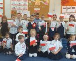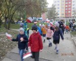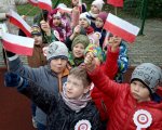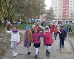Uczniowie klas 1-3 uczcili 101 Rocznicę Odzyskania Niepodległości Radosną Paradą wokół Osiedla Kosmonautów.