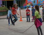 Na zakończenie cyklu zajęć o zdrowiu Świetliczaki z klas 1 wzięły udział w „Smacznych i zdrowych potyczkach nie tylko sportowych”. W przygotowanych w atrium i na boisku zabawach dzieci mogły spróbować swoich sił w konkurencjach sprawdzających ich sprawność fizyczną, a także wiedzę zdobytą w czasie zajęć o zdrowiu. Rozpoznawaliśmy zdrowe i niezdrowe produkty, komponowaliśmy zdrowy posiłek, skakaliśmy po zdrowie, braliśmy udział w witaminowym wyścigu, układaliśmy piramidę zdrowia, zgadywaliśmy po smaku, co jemy. Wszystkim nie tylko sportowe potyczki bardzo się podobały, a dzięki nim z pewnością utrwaliliśmy naszą wiedzę na temat zdrowia.