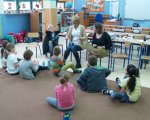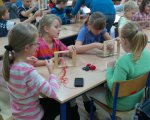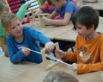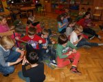 Podobnie jak w ubiegłym roku, nasza świetlicowa „Planeta” znów przemieniła się w warsztat rękodzielniczy. Stało się to oczywiście za sprawą Fundacji OVO, która kolejne świetlicowe grupy zaznajamia z tajemnicami sztuki tradycyjnej. Znów w świetlicowych salach można spotkać dzieci wyplatające sznurki metodą średniowieczną lub tkające na bardku, wycinające przepiękne wzory kurpiowskie lub łowicie. Znów goszczą u nas stadka filcowych myszy, a na przegubach wielu rąk zobaczyć można koralikowe bransolety. Zajęcia, choć czasem wymagają wiele wysiłku, skupienia i ogromnej cierpliwości, bardzo przypadły naszym dzieciom do gusty, a odkrywanie świata sztuki tradycyjnej okazało się być wspaniałym sposobem spędzania wolnego czasu.