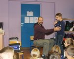 23 października 2018 r. w ramach projektu "Żyć z pasją i z pasji" klasa 4h miała okazję gościć w swojej sali wyjątkową osobowość - pana Tomasza Lewandowskiego - kaskadera, filmowca i fotografa. Pan Tomasz nauczył dzieci podstawowych zasad kaskaderki, udostępnił swoje filmowe zbiory z kaskaderskich pokazów. Zachwytom nie było końca i już czekamy na kolejne spotkanie, tym razem o filmie i fotografii.