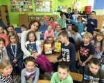 Jesienne popołudnia w naszej świetlicy były jak zawsze ciekawe i kolorowe, a w tym roku też bardzo wyjątkowe, gdyż mieliśmy zaszczyt gościć w naszych skromnych progach Panią Annę Paszkiewicz - autorkę książek dla dzieci. Pani Ania opowiadała nam jak powstają książki, kim jest edytor, introligator, jak powstają ilustracje, a także… czym jest malarstwo abstrakcyjne. Na spotkaniach nie zabrakło także książek autorstwa Pani Paszkiewicz, a dla nas wszystkich wielką przyjemnością i nie lada zaszczytem była możliwość wysłuchania ich w interpretacji samej Autorki. Mamy nadzieję, że jeszcze nie jeden raz spotkamy się z Panią Paszkiewicz po drugiej stronie liter „Plosiaczka” czy „Pafnucego”.