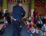 W naszej szkole duży nacisk kładziemy na bezpieczeństwo oraz edukację związaną z bezpieczeństwem dzieci. W ramach edukacji w tym kierunku, uczniowie z grup świetlicowych klas pierwszych uczestniczyli w spotkaniu z policjantem. Tematem spotkania było utrwalenie zasad ruchu drogowego oraz przypomnienie zagadnień dotyczących bezpieczeństwa dzieci w szkole i w domu. Pan policjant, w formie praktycznej, przypomniał podstawowe zasady zachowania się podczas przechodzenia przez jezdnię. Wytłumaczył jak należy zachować się w kontaktach z obcymi ludźmi, jak dbać o bezpieczeństwo własne i innych oraz do kogo zwracać się o pomoc w sytuacji zagrożenia. Dzieci z dużym zainteresowaniem słuchały rad i wskazówek zaproszonego gościa, dzieliły się swoimi spostrzeżeniami i doświadczeniami oraz zadawały wiele pytań. Za spotkanie uczniowie podziękowali gromkimi oklaskami.