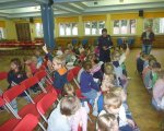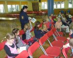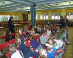 Dzieci z oddziałów przedszkolnych spotkały się z funkcjonariuszami Straży Miejskiej, którzy odwiedzili je, aby przeprowadzić zajęcia na temat bezpieczeństwa w domu, szkole i na ulicy. Dzieci wykazały się dużą wiedzą na temat zachowania zasad bezpieczeństwa, chętnie uczestniczyły w zajęciach i zadawały gościom pytania, na które otrzymywały wyczerpujące odpowiedzi. W podziękowaniu za współpracę rozdano dzieciom książeczki dotyczące tematyki omawianych na spotkaniu problemów.