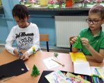 Uczniowie klasy 3f razem z Rodzicami i Paniami Anią i Agnieszką, przygotowali świąteczną paczkę dla dzieci z Kamerunu. Tworzenie paczki poprzedziły zajęcia dotyczące tego państwa, podczas których oglądaliśmy zdjęcia, wyszukiwaliśmy ciekawe informacje odnoście wielkości, ilości ludności, klimatu oraz porównywaliśmy je z naszym krajem. Przez tydzień przynosiliśmy do klasy najbardziej potrzebne rzeczy, samodzielnie przygotowaliśmy także świąteczne upominki. Gdy wszystko było już zebrane, posegregowaliśmy produkty i zapakowaliśmy naszą przesyłkę. 6 grudnia całą klasą zanieśliśmy paczkę na pocztę – ważyła aż 10 kilogramów i po 2 tygodniach powinna być już na miejscu. Tego dnia my też byliśmy pomocnikami Mikołaja i sprawiliśmy prezenty dzieciom z miejscowości Abong Mbang w Kamerunie. Po powrocie w klasie czekały na nas prezenty od Mikołaja.