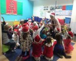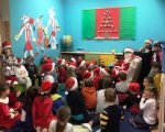Jak co roku 6 grudnia zawitał do nas Mikołaj. Przywitaliśmy Go z ogromną radością. Poznaliśmy legendę o Świętym Mikołaju, przeprowadziliśmy krótki wywiad z naszym brodatym gościem, a na koniec zaprezentowaliśmy nasze umiejętności muzyczne. Mikołaj po tym jak zobaczył na własne oczy jacy jesteśmy grzeczni nie miał innego wyjścia jak wręczyć nam wymarzone prezenty ;) Uśmiechy z naszych twarzy nie schodziły.