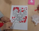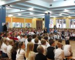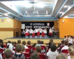 W piątek poprzedzający Święto Niepodległości odbył się w naszej szkole apel okolicznościowy, na który zostały zaproszone dzieci z oddziałów przedszkolnych. Ubrane w stroje galowe i przyozdobione biało-czerwonymi kotylionami godnie prezentowały się podczas uroczystości. Z uwagą słuchały montażu słowno-muzycznego, przygotowanego przez starszych kolegów. Podczas apelu jak i później w swoich salach poznawały przeszłość ojczyzny, wspólnie rozwiązywały krzyżówkę dotyczącą symboli narodowych oraz w grupach wykonywały pracę plastyczną, której tematem było godło Polski. Obchody Dnia Niepodległości w oddziałach przedszkolnych zamknęła nauka wiersza „Barwy ojczyste” autorstwa Czesława Janczarskiego.