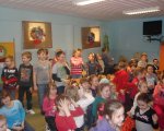 Choć w tym roku śnieg pomieszał wszystkim szyki, przykrył pisanki i koszyki, to wielkanocny Zajączek nie zawiódł Świetliczaków, i jak co roku przybył do nich ze swoim przedstawieniem. Nie zabrakło kurczaczków, baranków, barwnych jajek i wesołego wiosennego nastroju. Młodzi artyści pod kierownictwem pani Bożeny zaprezentowali ciekawe i starannie przygotowane przedstawienie przybliżające nam zwyczaje wielkanocne. Na zakończenie artystycznych występów odbyła się też próba generalna przed lanym poniedziałkiem i w tej mokrej scenerii Zajączek się z nami pożegnał, ale obiecał, że za rok znów się spotkamy.