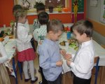 W ostatnim tygodniu przed Świętami Bożego Narodzenia odbywały się w naszych oddziałach przedszkolnych uroczyste spotkania wigilijne. Po złożeniu życzeń i przełamaniu się opłatkiem dzieci wraz z paniami wychowawczyniami zasiadły do świątecznie przystrojonego stołu. Kolędy śpiewane z rodzicami oraz zapach wigilijnych potraw to magia świątecznego nastroju pełnego życzliwości i radości, który zapanował w naszych grupach.