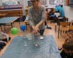 Uczniowie z dużym zaangażowaniem brali udział w przygotowanych doświadczeniach, trafnie stawiali hipotezy i wyciągali wnioski.