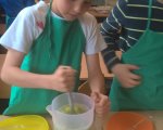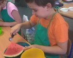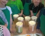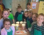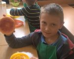 W maju w klasie 1e odbyły się Warsztaty żywieniowe przy współpracy z Akademią Żywienia - "Sałatka owocowa - bomba witaminowa" oraz "Soki owocowe - smaczne są i zdrowe" w ramach programu "Znaczenie zdrowego żywienia w profilaktyce nadwagi, otyłości i innych zaburzeń okresu rozwojowego". Uczniowie samodzielnie przygotowywali sałatkę i soki owocowe - utrwalili wiadomości na temat znaczenia właściwego doboru produktów dla prawidłowego rozwoju, wyrabiali umiejętności bezpiecznego korzystania z urządzeń oraz dzięki zmysłowi smaku określali nazwę owoców. Była to dla nas przyjemna nauka poprzez zabawę praktyczną.
