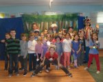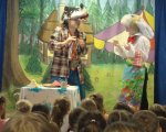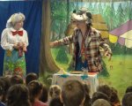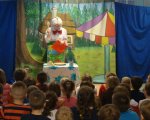 Nie tylko muzyka, ale także bajki, mogą łączyć pokolenia. Przekonać się o tym mogliśmy na początku czerwca za sprawą krakowski aktorów z teatru Art.- re, których zaprosiły panie ze świetlicy, by w wyjątkowy sposób uczcić święto wszystkich swoich podopiecznych- Międzynarodowy Dzień Dziecka. Artyści gościli u nas ze spektaklem pt.: „Wilk i zając” opartym na motywach znanej chyba wszystkim dorosłym, popularnej w latach 70. i 80. zeszłego stulecia, radzieckiej bajki „Nu, pogodi!” („Ja ci pokażę”) Wiaczesława Kotionoczkina.Dzięki wspaniałej grze aktorskiej wszyscy na chwilę mogliśmy się przenieść w świat przesympatycznego Zając i wiecznie goniącego go Wilka. Jak się szybko okazało przygody tego przezabawnego duetu, wciąż zachwycają, bawią i rozśmieszają małych i dużych widzów. Aktorzy swoją wyśmienitą grą, dużą dawką humoru oraz włączeniem nas w akcję przedstawienia, sprawili, że przez prawie godzinę mogliśmy podróżować po świecie sztuki. Teatrzyk Art.-re gościł u nas po raz pierwszy, ale jak nam się wydaje nie ostatni i być może już całkiem niedługo będziemy mieli okazję znów wspólnie odkrywać świat teatralnych przedstawień.